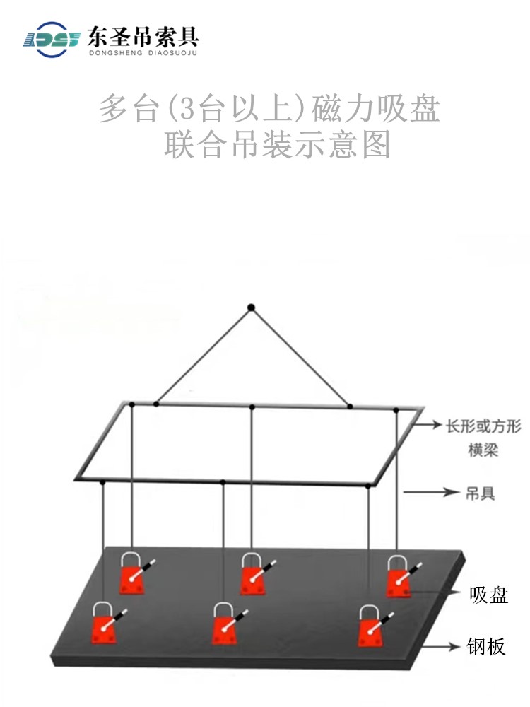 6、起吊鋼板需要根據(jù)物體的形狀和重量來選擇永磁吸盤,例如規(guī)格為600KG的永磁吸盤只能吸